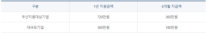 - 지원대상 근로자를 고용하고 6개월 이상 고용을 유지한 경우 1년간 매 6개월마다 지급