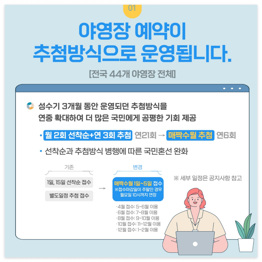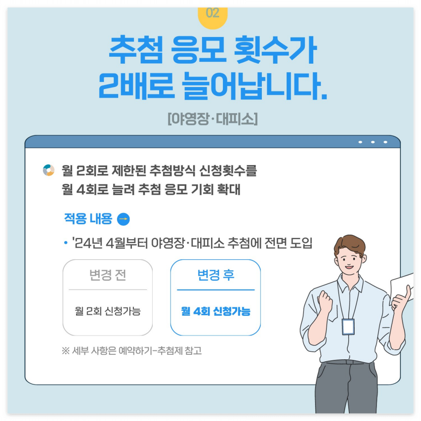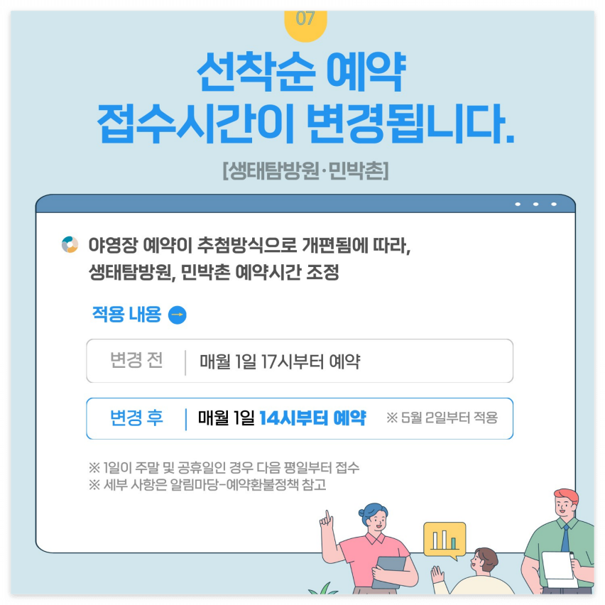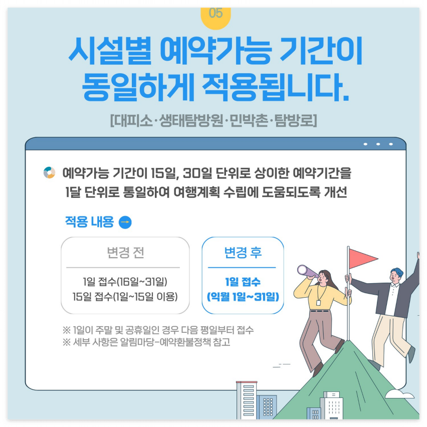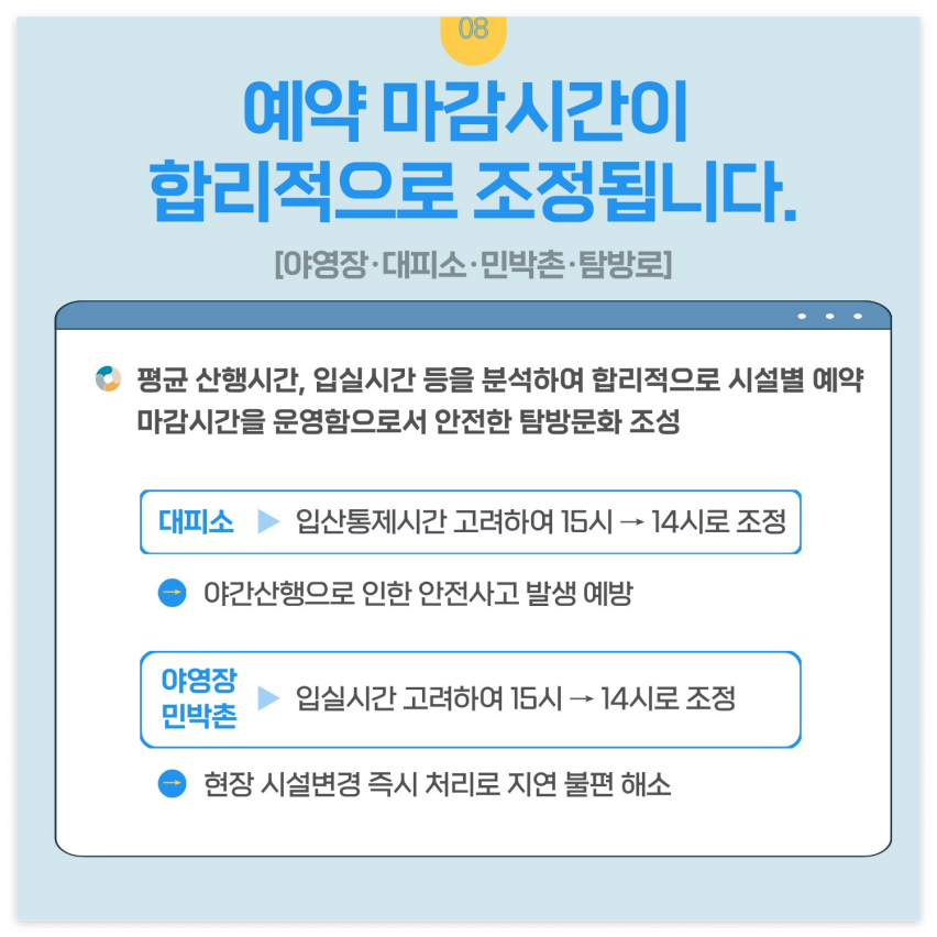 - 성수기 및 비수기 차이: 성수기에는 예약 경쟁이 치열하므로 예약 오픈 시간에 맞춰 빠르게 진행하는 것이 중요합니다.
