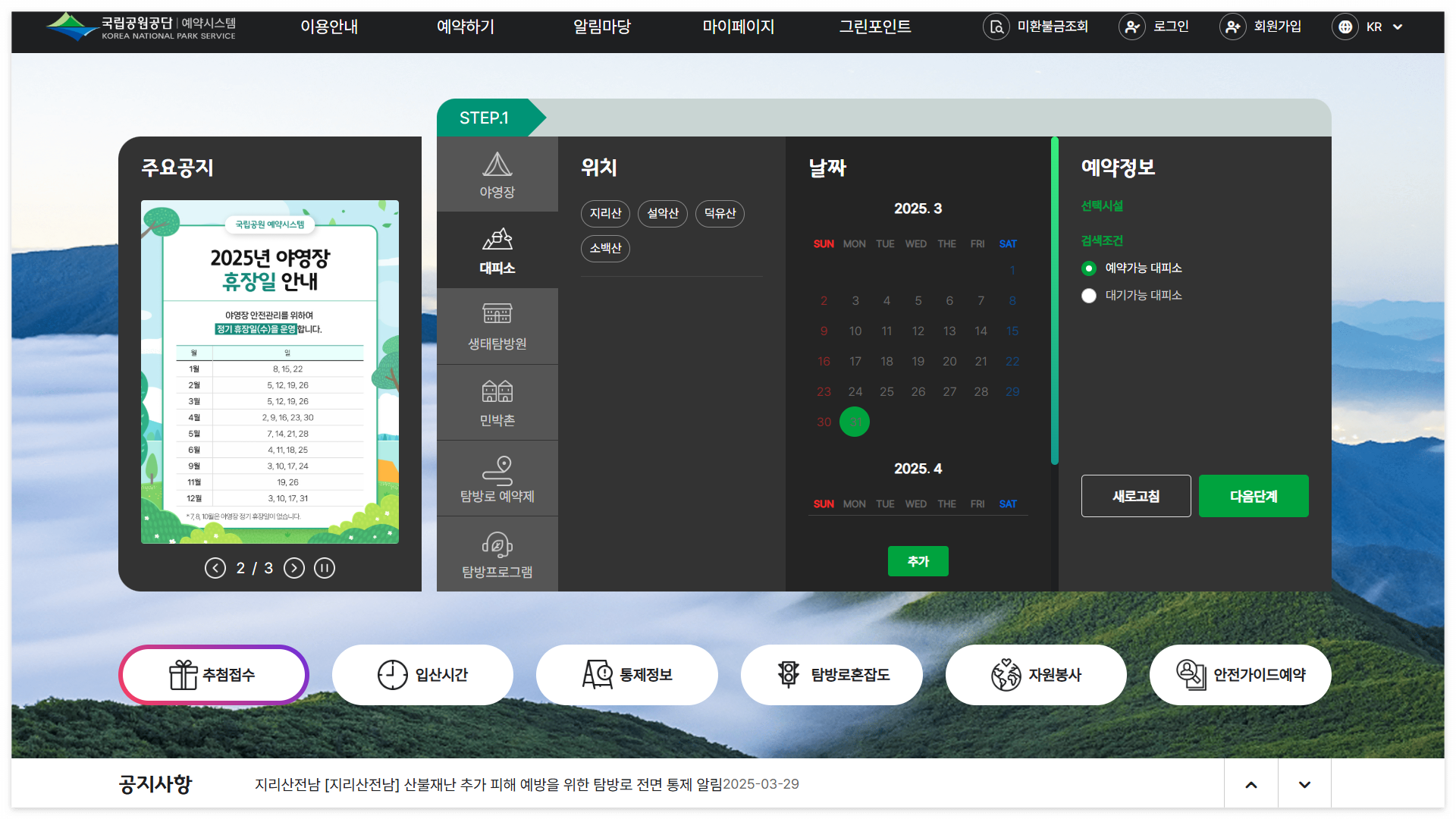 - 국립공원 예약통합시스템(https://reservation.knps.or.kr) 접속