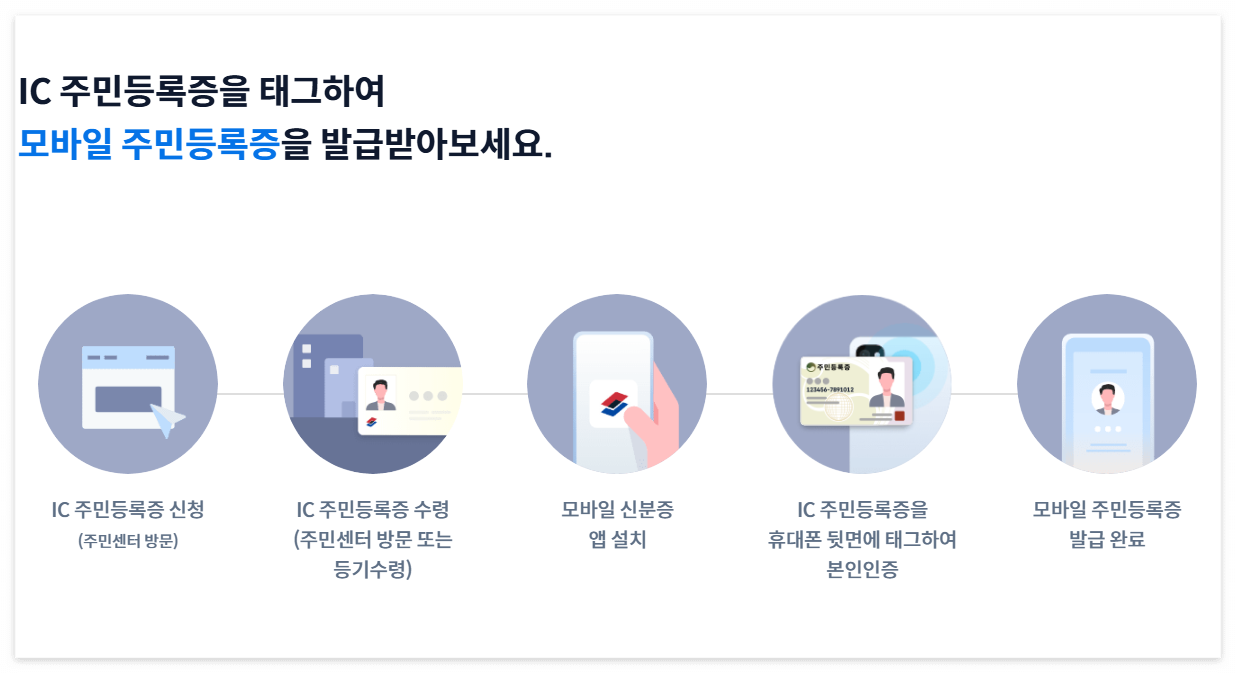 IC 주민등록증이 없는 경우 주민센터 방문을 통해 모바일 주민등록증을 발급받을 수 있습니다.