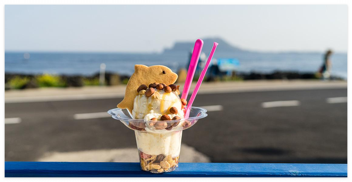 - 우도산 땅콩으로 만든 고소한 맛의 아이스크림