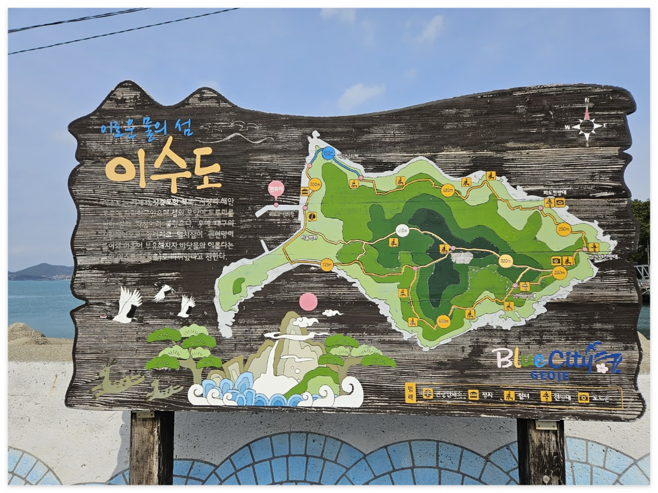 - 활동 계획: 이수도는 작은 섬으로, 자연경관을 즐기며 여유롭게 휴식을 취하는 것이 좋습니다.