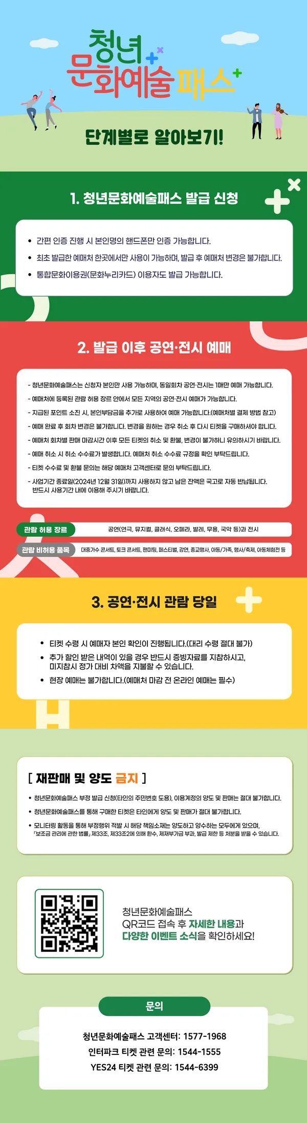 - 신청방법 : 청년문화예술패스 협력예매처 중 택 1, 온라인신청(인터파크, YES24)
