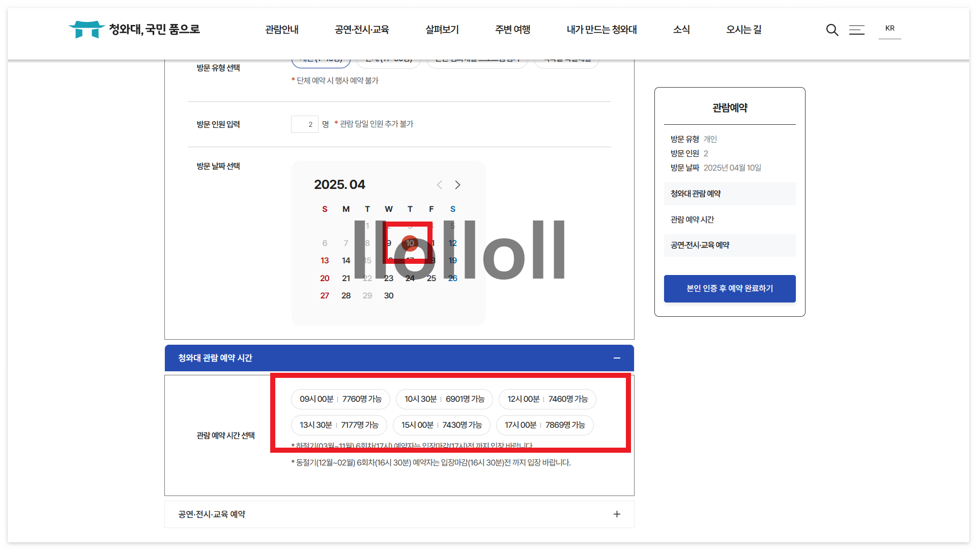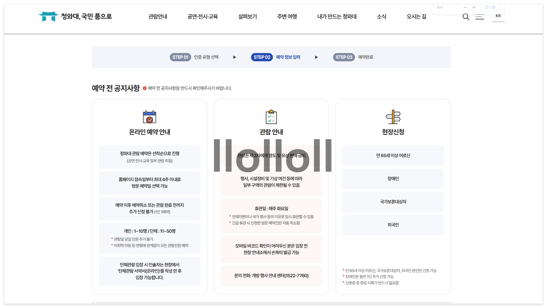 - 청와대 공식 홈페이지 접속: 청와대 관람 예약은 청와대 개방 공식 홈페이지에서 진행됩니다. 이 사이트는 관람 일정, 예약 절차, 그리고 관람 시 유의사항 등을 제공합니다.