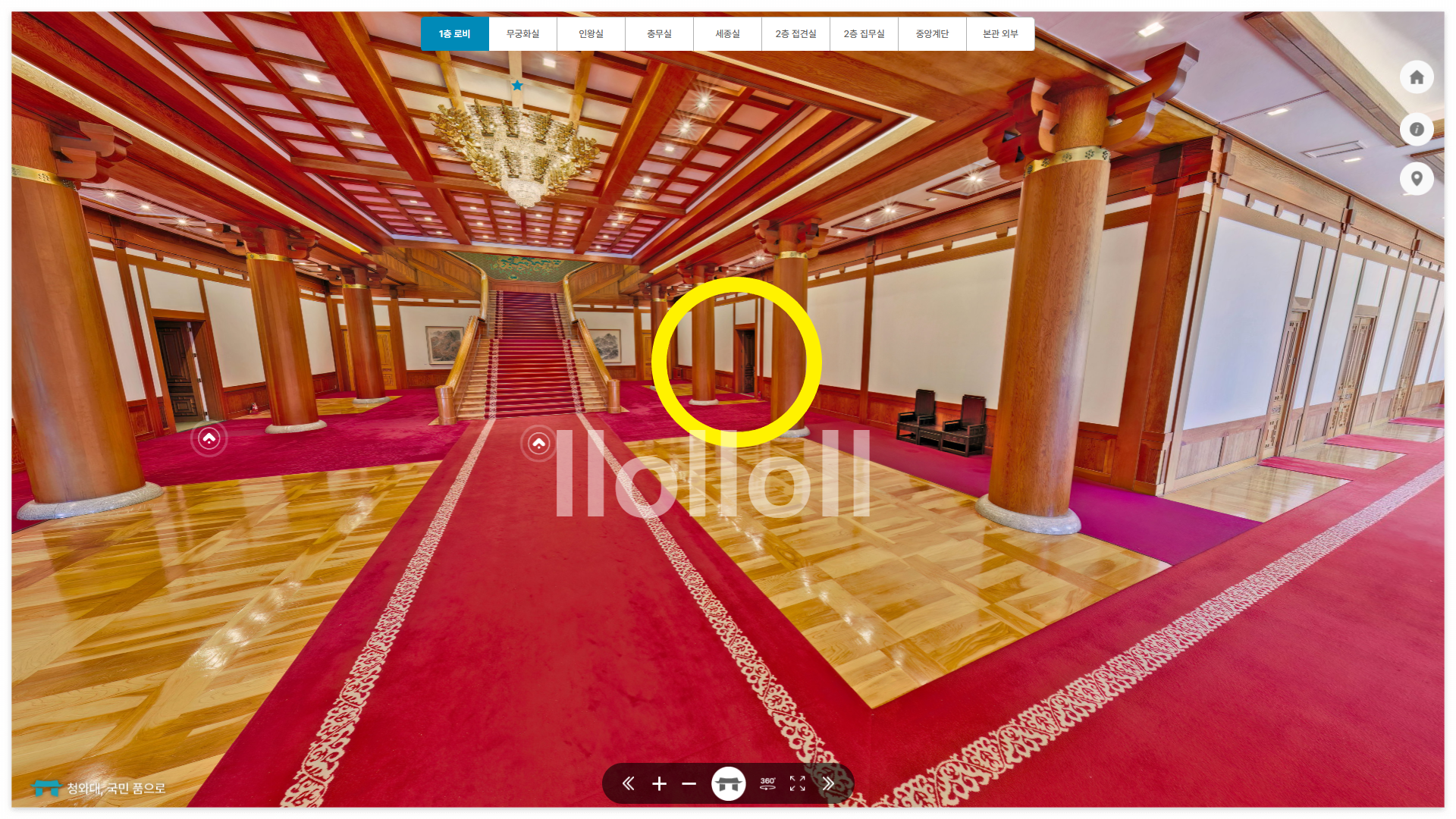 A. 사전에 알아보던 중, 온라인으로도 청와대를 관람할 수 있다는 것을 알아냈는데 아쉬운 대로 이 방법으로라도 청와대를 관람하실 수 있어요! 그리고 로비 사진에 표시한 부분에 보면 엘리베이터가 있기 때문에, 휠체어나 거동이 불편하신 분들도 관람하실 수 있습니다.(휠체어나 유모차를 입구에서 빌려주기도 해요!)