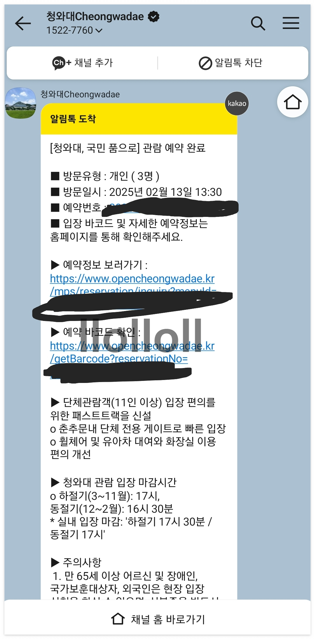 - 입장 시 신분증 제시: 입장 시 예약 확인 메시지와 신분증을 제시해야 합니다.