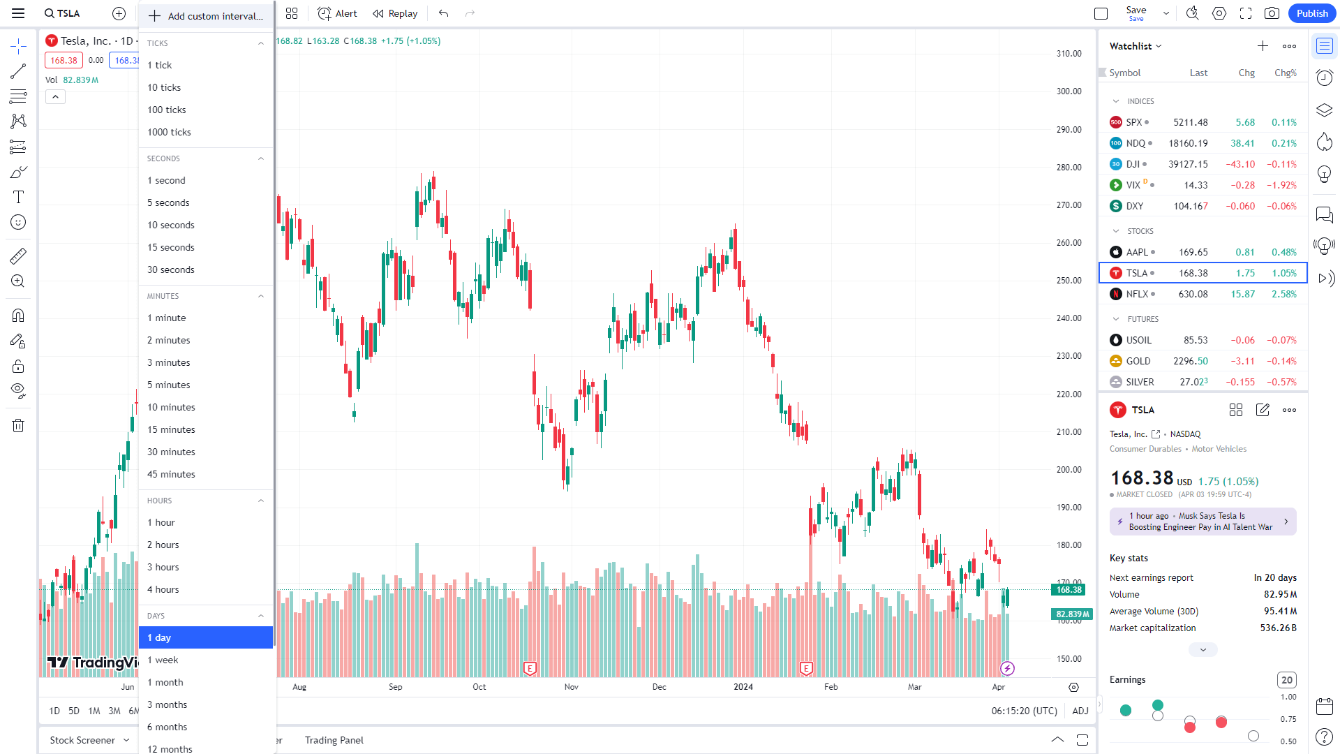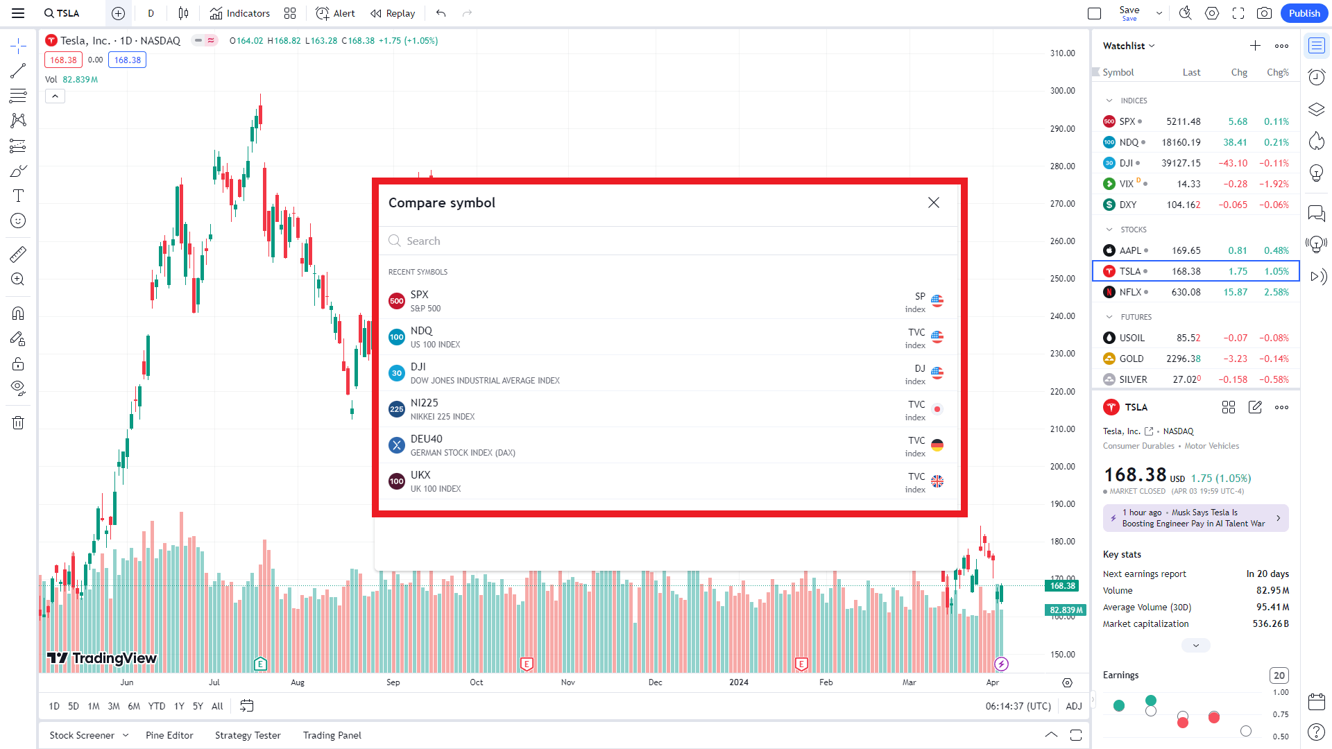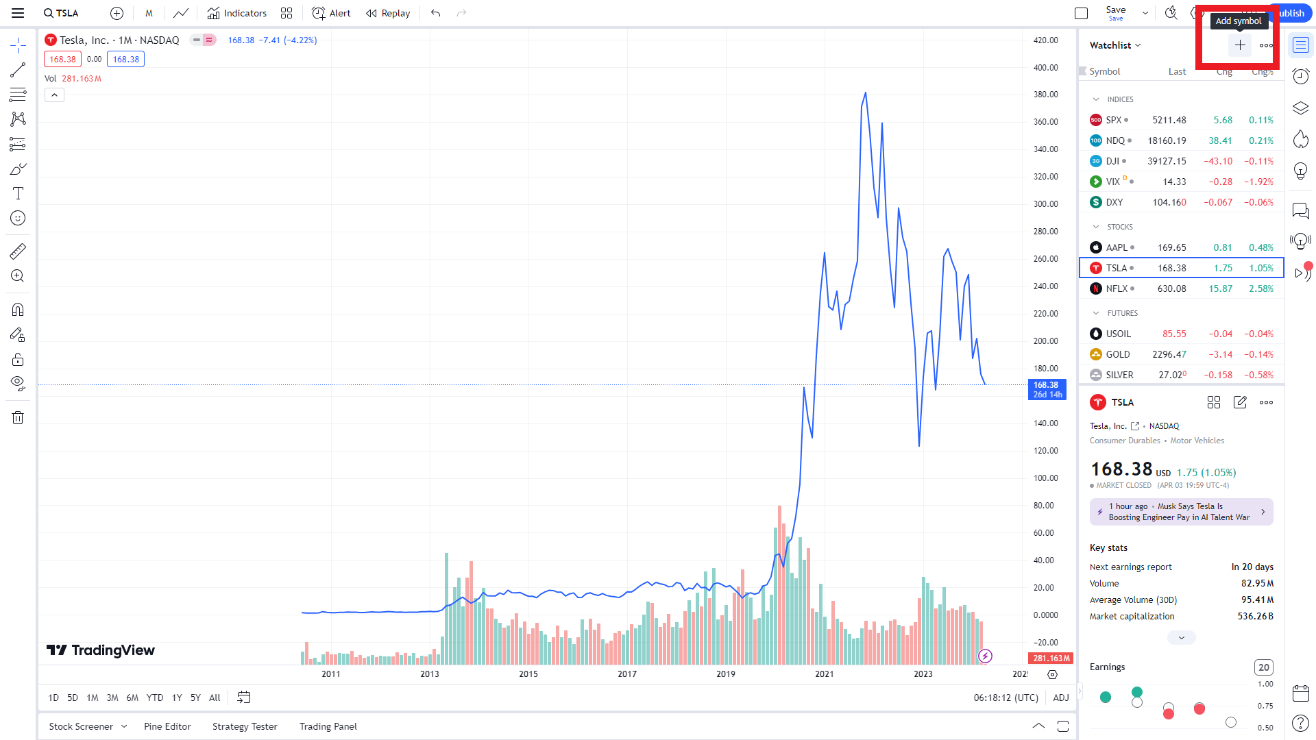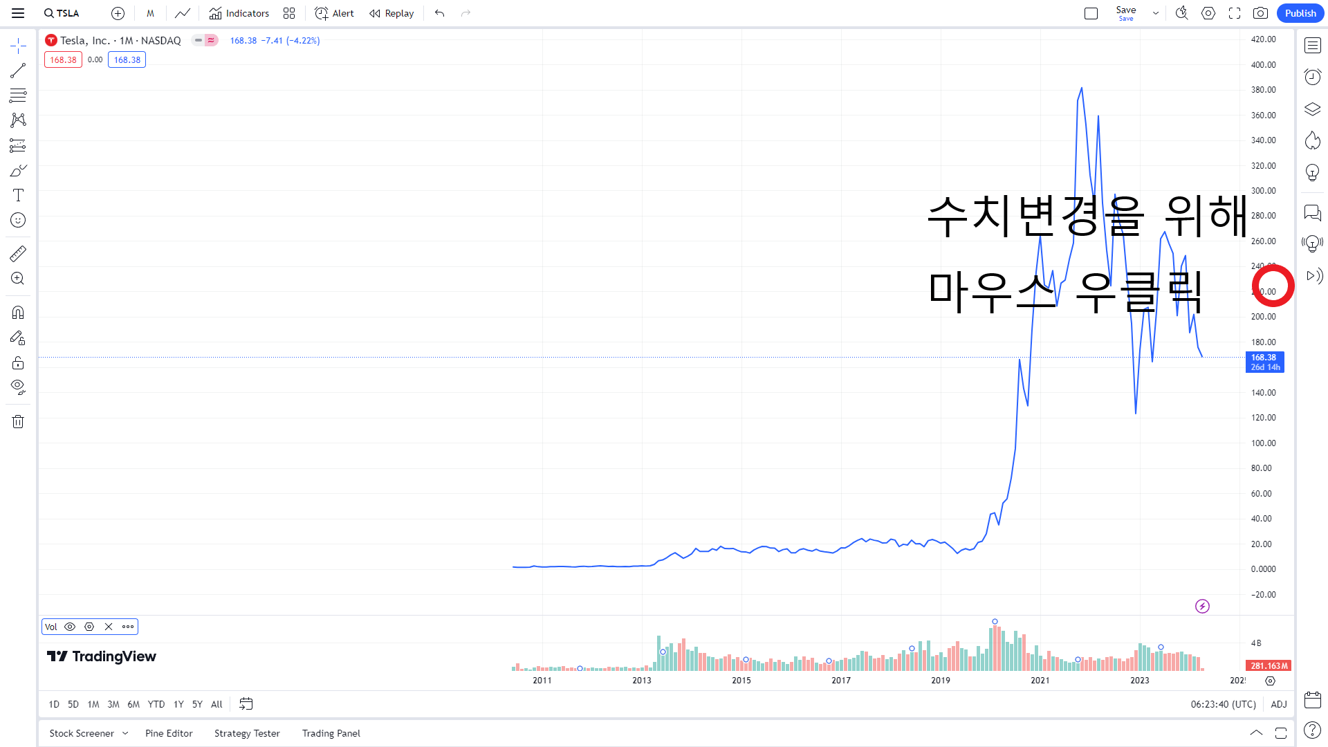 - 심벌(티커)에 TESLA 검색