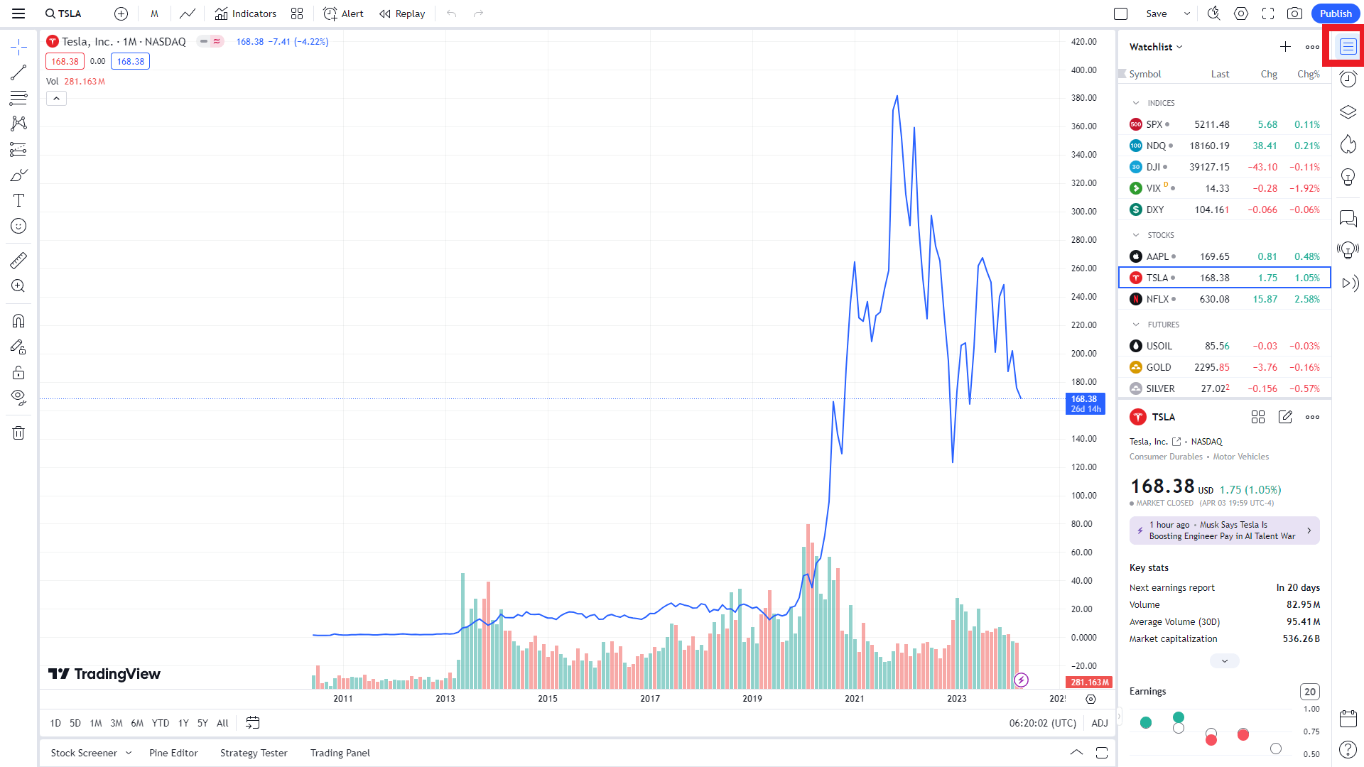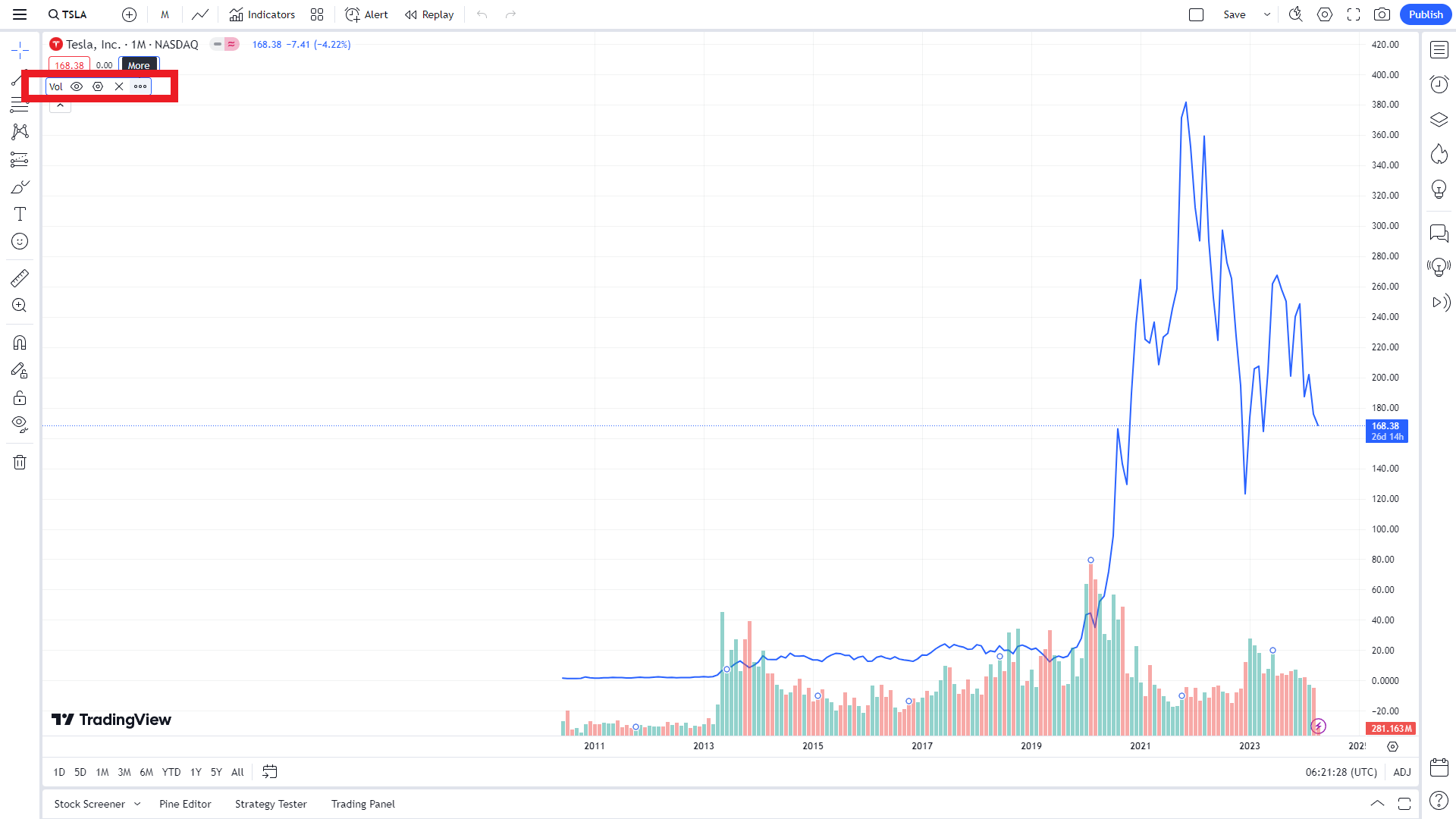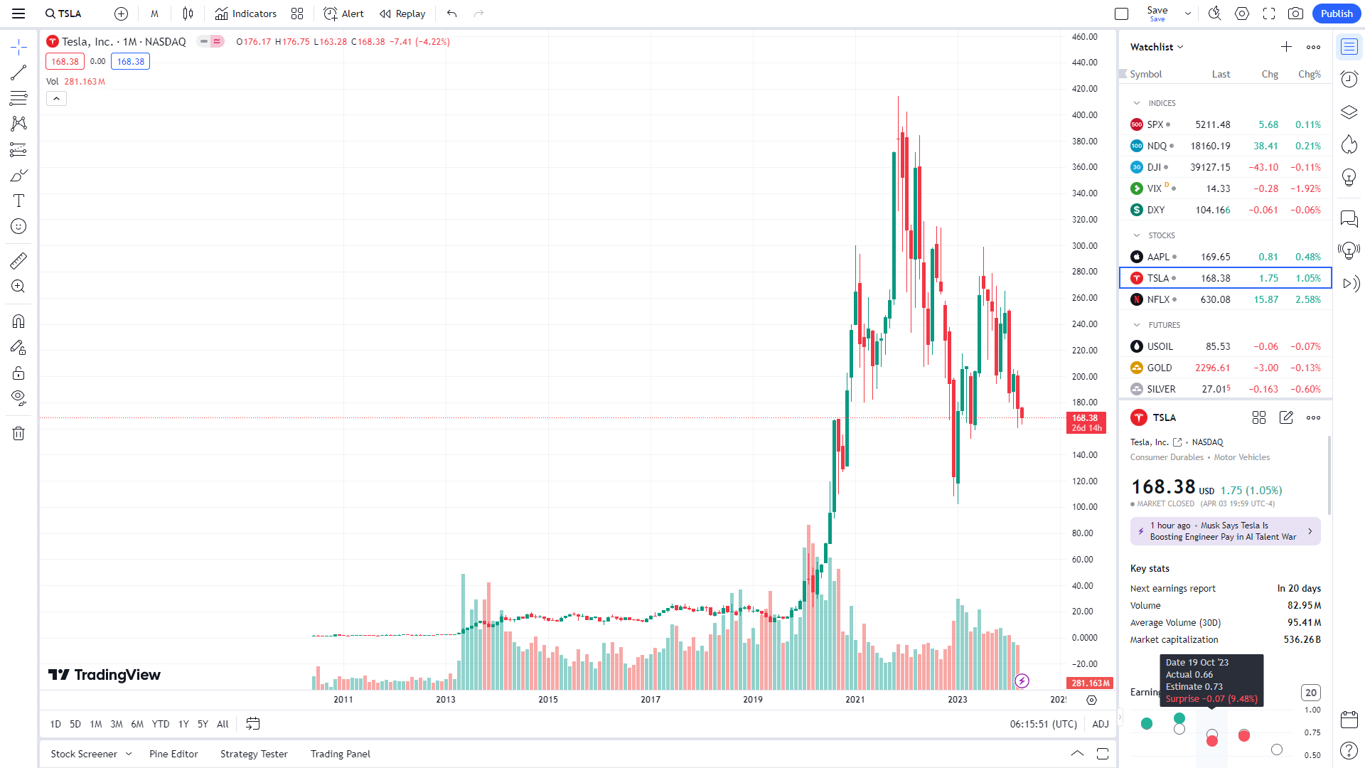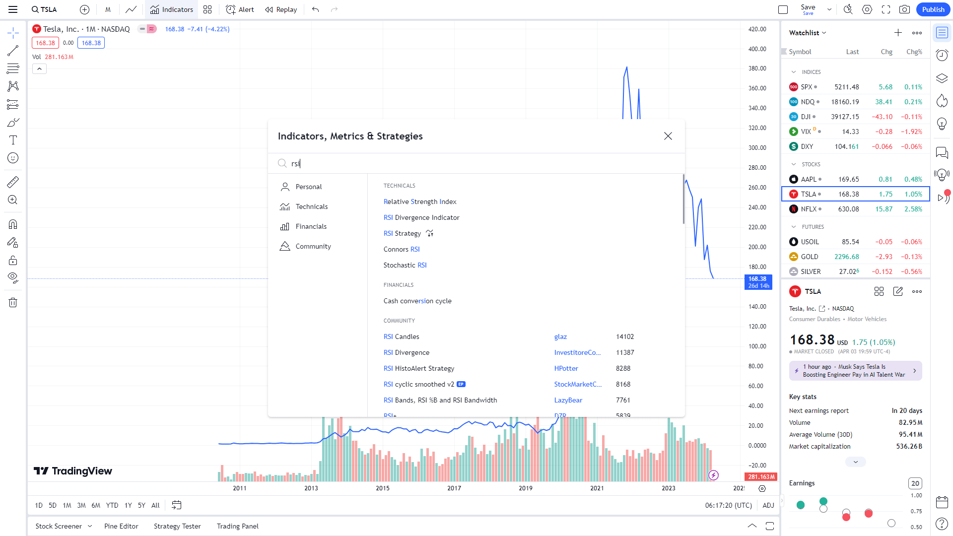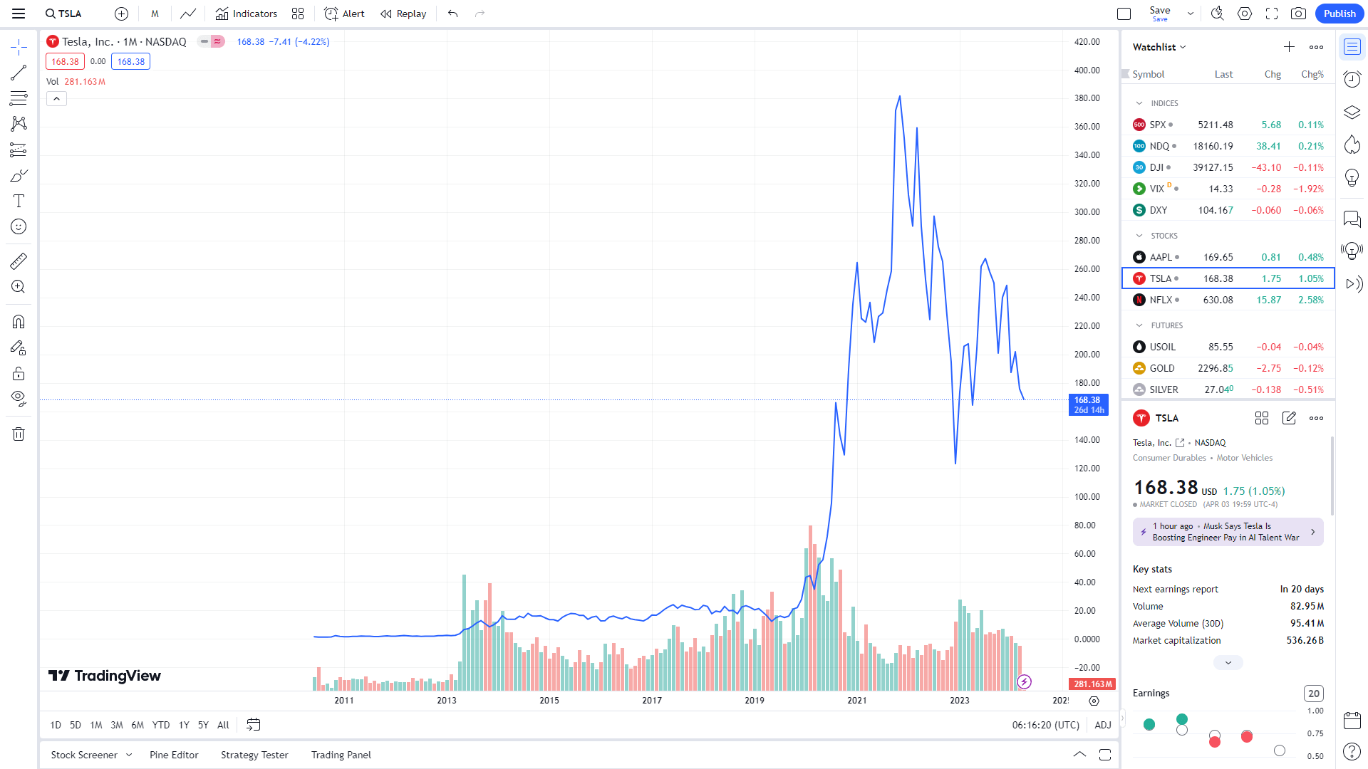 - 심벌(티커)에 TESLA 검색
