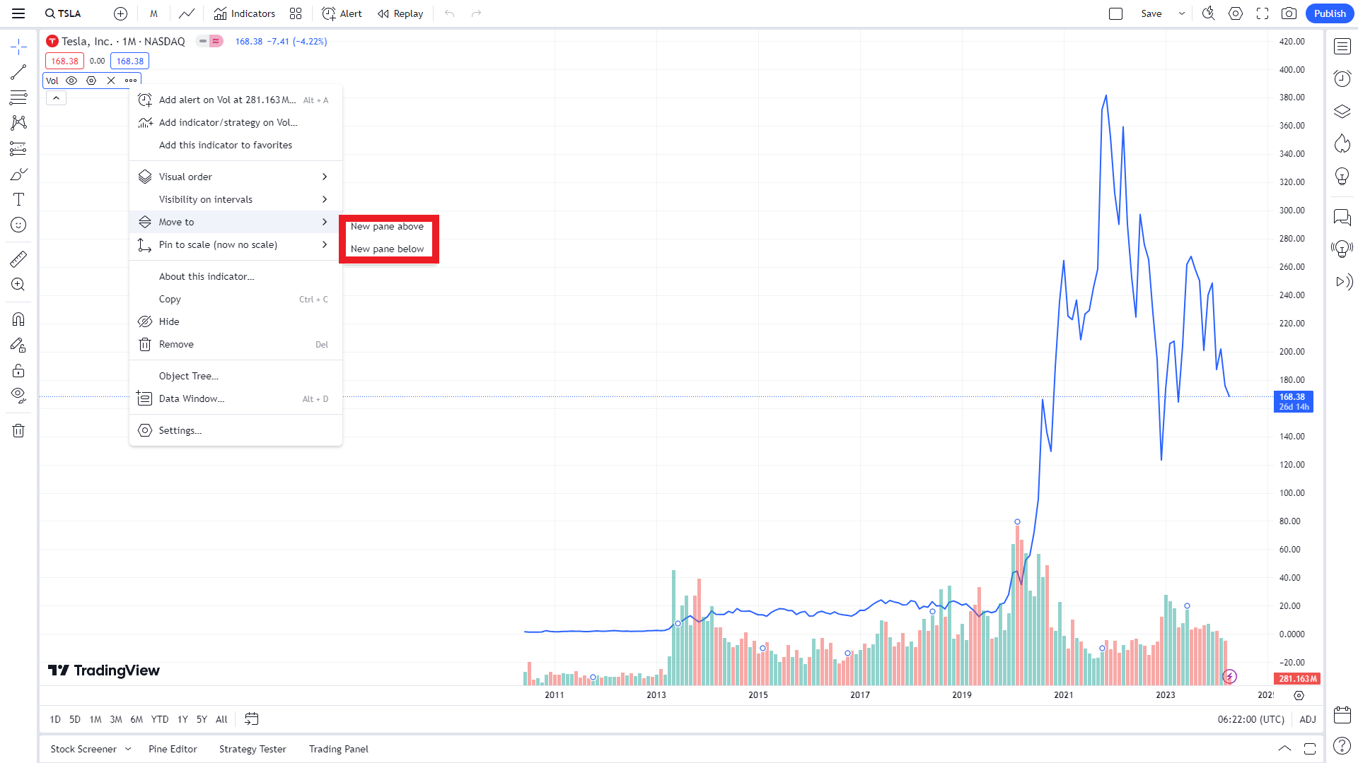 분류나 병합을 원하는 지표나 지수, 정보를 클릭하고, 설정 더 보기 아이콘(···)을 누르면 Move to(옮기기)를 확인할 수 있습니다. 이 기능을 통해 New pane below(아래쪽 새 페인)처럼 새로운 공간에 이동을 할 수 있습니다. 원하는 지표가 분류됐으면 크기를 조정해 원하는 차트 모습으로 완성할 수 있습니다.