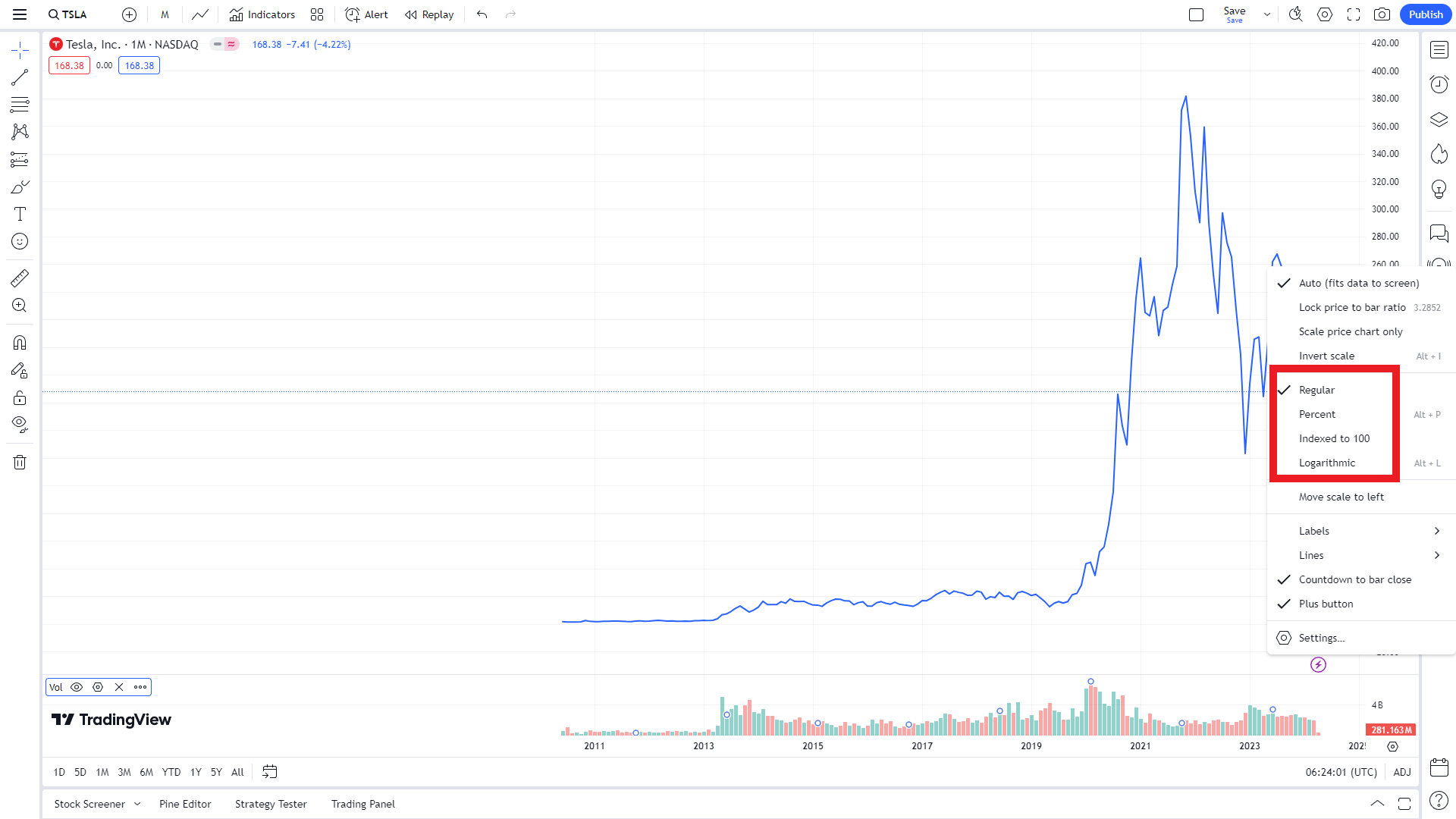 가끔 차트를 가격보다 퍼센티지로 봐야 할 경우가 생긴다면, 가격수치에서 우클릭을 하여 퍼센티지로 변경할 수 있습니다. 이렇게 되면 설정된 기준을 바탕으로 ±xx%로 표시됩니다. 다시 되돌리고 싶으면 같은 방법을 통해 Regular로 설정하면 기본값으로 되돌릴 수 있습니다.