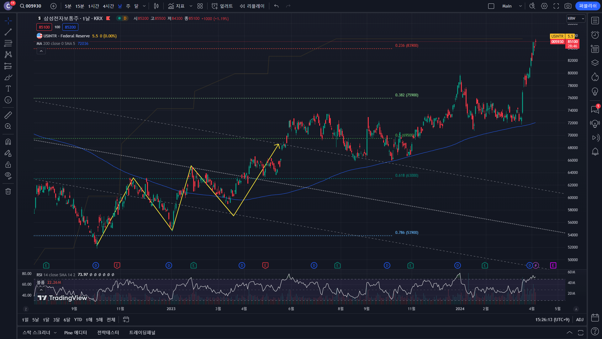- 가격흐름을 분석하기 위해 삽입한 다양한 드로잉