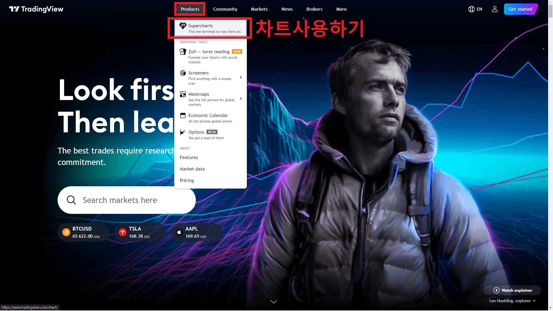 가장 먼저 상단 링크를 통해 사이트에 접속하게 되면 무료로 사용가능하며, 회원가입을 진행하면 됩니다. 이후 로그인하여 메인홈페이지에서 프로덕트 항목을 통해 차트를 접속하면 다양한 차트를 확인할 수 있습니다.