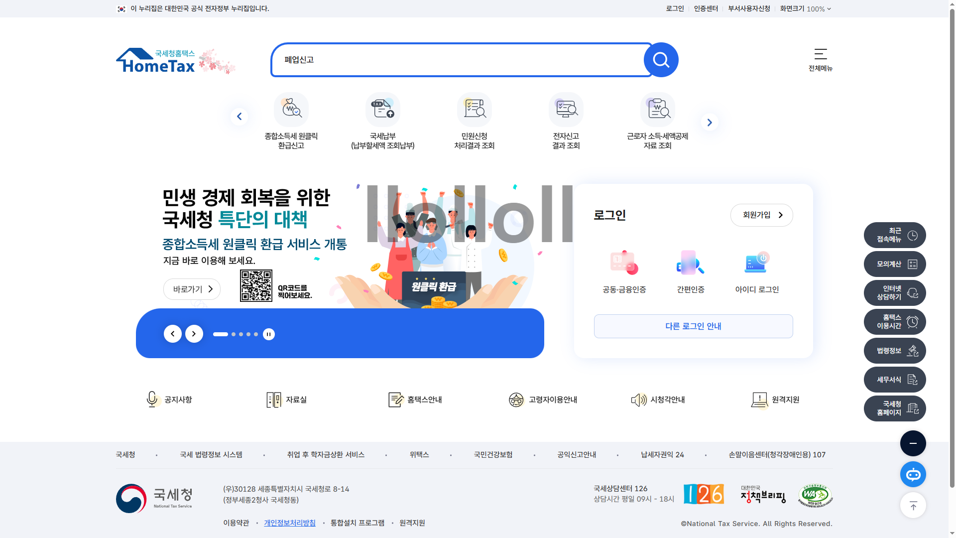 - 국세청 홈택스 홈페이지에 접속해 로그인합니다.