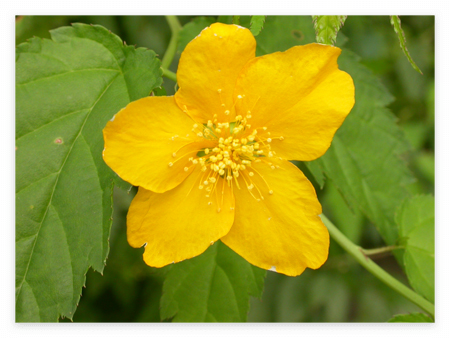 황매화(Kerria japonica)는 장미과에 속하는 낙엽관목으로, 4~5월에 노란색 꽃이 피어 봄의 전령으로 불립니다. 한국, 일본, 중국 등 동아시아에 널리 분포하며, 습기가 있는 곳이면 음지와 양지를 가리지 않고 잘 자랍니다. 꽃잎은 5장이며, 꽃받침도 5개로 단정한 모양을 하고 있습니다. 꽃이 진 후에는 9월쯤 갈색의 달걀 모양 열매를 맺는 것이 특징입니다.