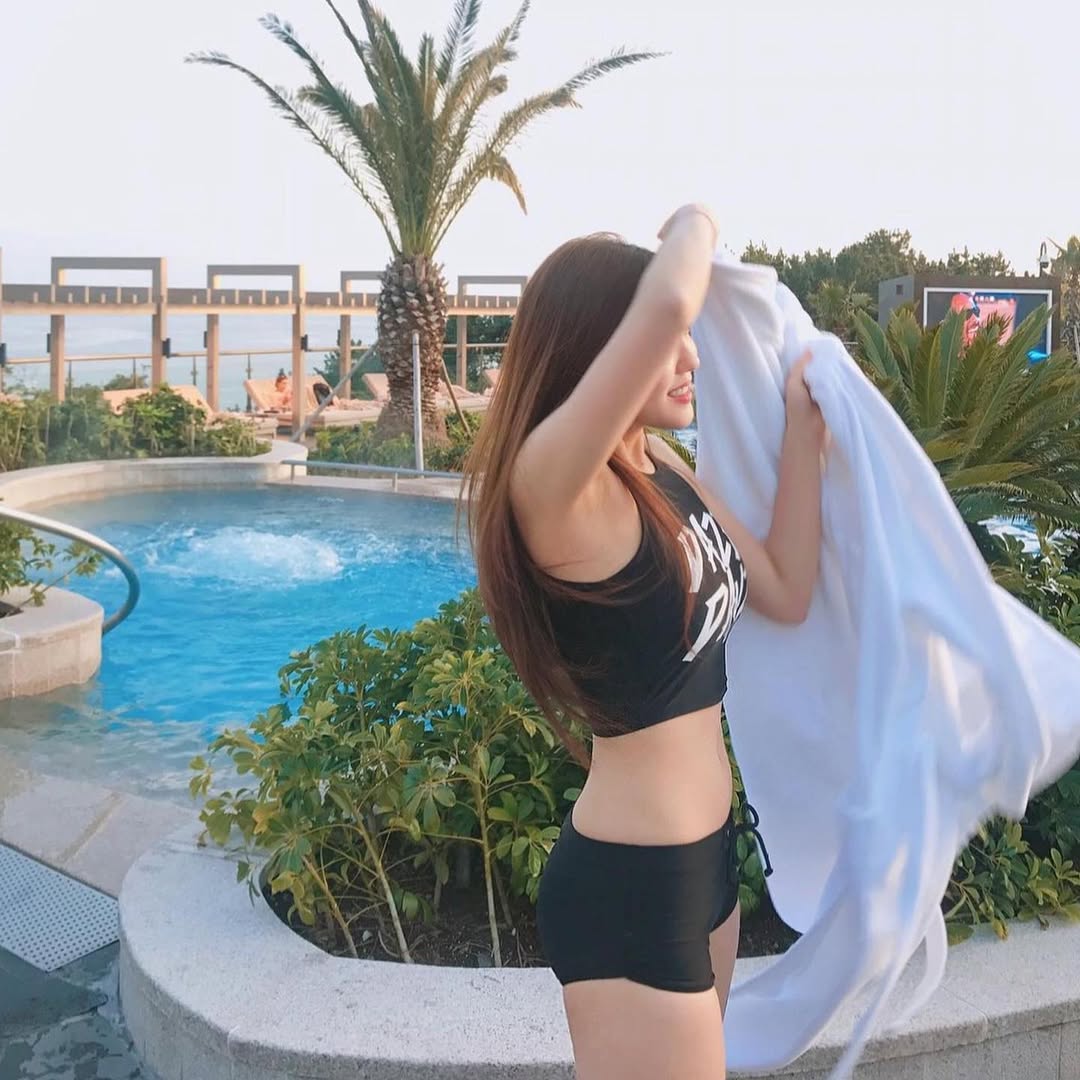 “효민은 하와이 해변에서 흰색 크롭탑에 검은색 비키니를 입고 볼륨감 넘치는 몸매를 드러냈다.