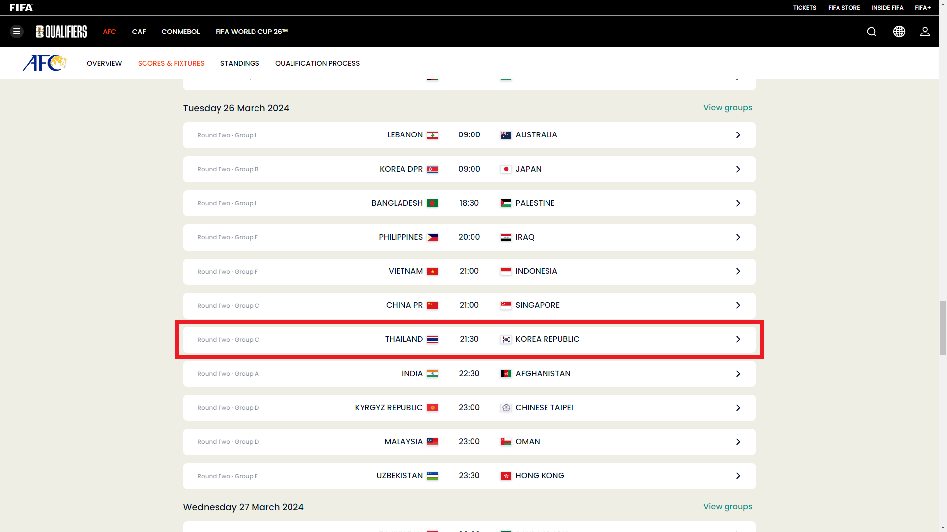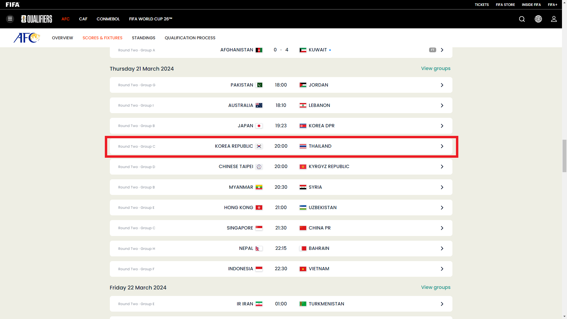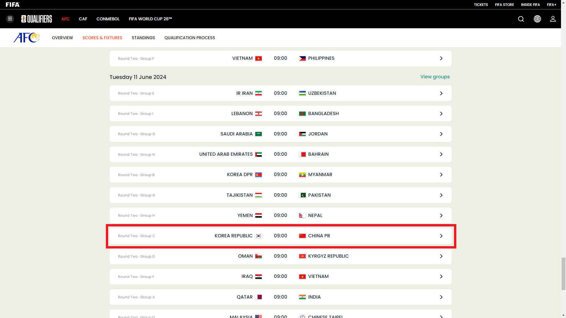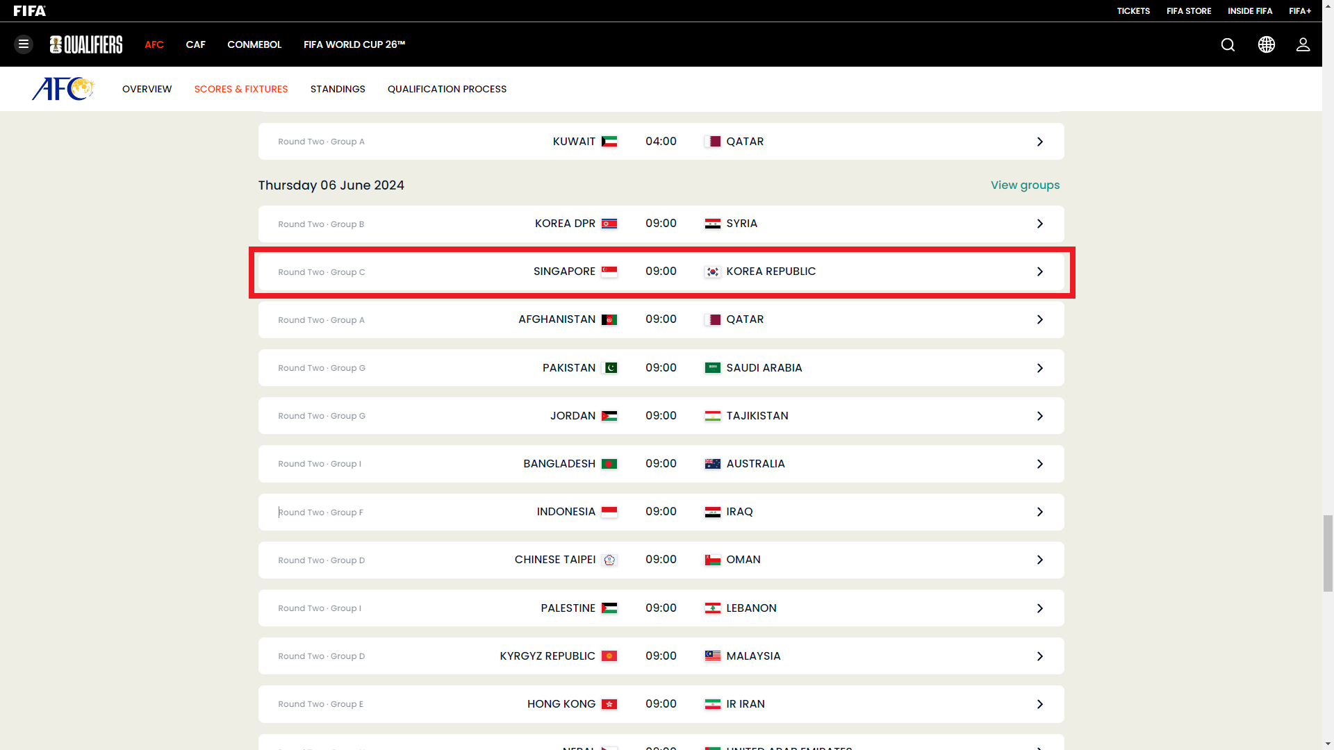 - 대진 : 싱가포르 vs 대한민국