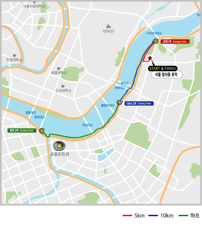 - 기타 정보: 참가자들은 서울의 역사적인 장소인 암사동 유적지를 배경으로 달리며, 도심 속에서 자연을 느낄 수 있는 코스를 경험하게 됩니다. 대회는 참가자들의 건강 상태를 고려하여 엄격한 안전 관리가 이루어집니다.