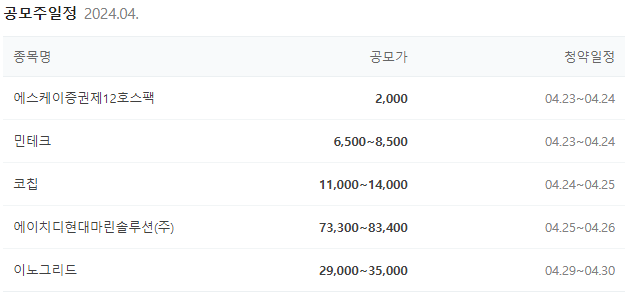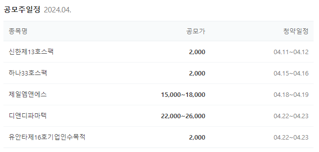 4월 핵심종목 공모주 일정